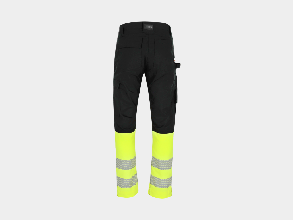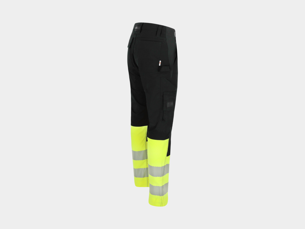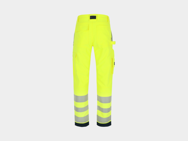 Multi-pocket high viz broek met 4-weg stretch stukken op kruis en zijkanten voor extra bewegingsvrijheid